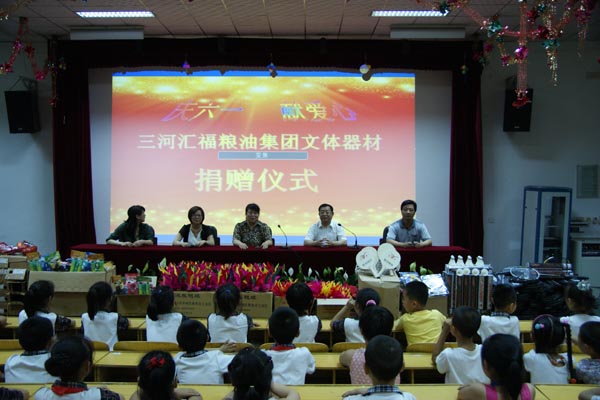 六一国际儿童节期间,汇福粮油集团向燕郊开发区第六小学捐赠上千件文体用品。同学们欢呼雀跃,心情激动,齐呼“感谢石(克荣)爷爷”。都纷纷表示,要好好学习,天天向上,锻炼身体,德智体全面发展,给石爷爷一个满意的答卷。